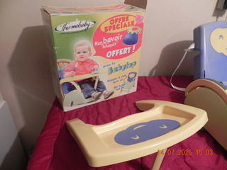THERMOBABY babytop excellent état très peu servi. la boite et le bavoir complet avec table amovible réglable en hauteur et profondeur position fauteuil trois couleur sympa et p