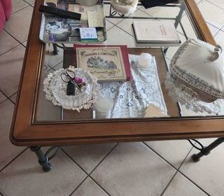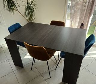 Table extensible en verre noir avec impression dim 1m10x60 à prendre à domicile