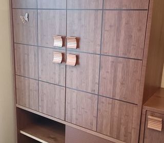 Meubles en 4 parties sur socle tous indépendants couleur marron nombreux rangements