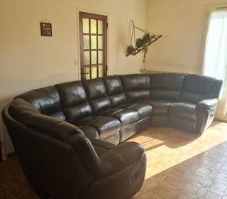 Canape 7 places modulable cuir noir avec 2 relax aux extrémités bon état pas de tâche ni déchirure