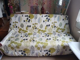 Canapé clic clac avec matelas de qualité dunlopillo, 1m93 de longueur avec housse ( housse abîmée sur le côté, à gauche, par le chat)
