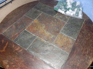 Pièce unique table en bois relooké avec peinturé et patine avec des mains d'artiste.