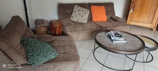 Je vends ce canapé-fauteuil en velours marron. Composé de 3 fauteuils pouvant s attacher les uns aux autres.Sans les coussins de couleur. - Type de produit : Canapé-fauteuil - M