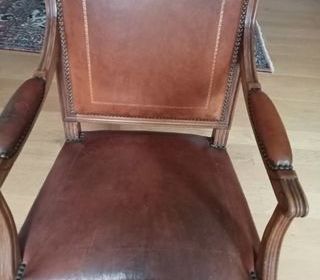 Original fauteuil en bois et cuir origine chateau proche Plancouet en bon état. A prendre sur place. Contact uniquement par tel.