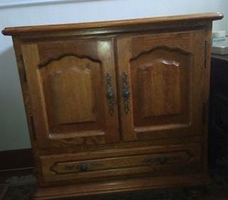 Superbe meuble télé en bois bien solide avec le plateau dessus coulissant et tournant pour ajuster la vue de la télévision. Le meuble contient 2 portes et 1 tiroir pour de nombre
