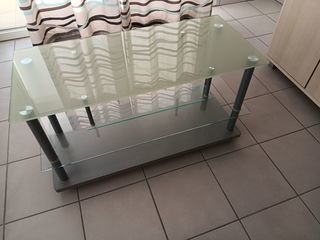 table basse en verre trempé sur roulettes . 4 plateaux. longueur /100cm. largeur / 45cm. hauteur / 55cm . prix 40euros . et rallonge 15 m prix 10 euros. à emporté sur br
