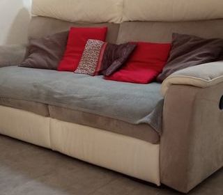 VDS CANAPE CUIR ET MICROFIBRE RELAX ELECTRIQUE BLANC ET GRIS CLAIR 3 PLACES - TRES CONFORTABLE TRES BON ETAT LONG 2 M