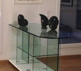VERRE TRANSPARENT EPAISSEUR 20mm REPOSANT SUR UNE PLAQUE DE MARBRE DE CARRARE, ENTIEREMENT DEMONTABLE. DIMENSIONS: longueur 175cm, largeur 65cm, hauteur 90cm la plaque de marbre