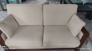 CANAPE FIXE 3 PLACES AVEC DEUX PETITES COUSSINS A FERMETURE L176-H91-P95 - TEINTURE MENUISIER ENCORE DISPONIBLE - 4 GRANDS COUSSINS A FERMETURE + 2 PETITS COUSINS A FERMETURE