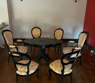 bel ensemble de 4chaises ,2 fauteuils 1 table de salon 1 méridienne