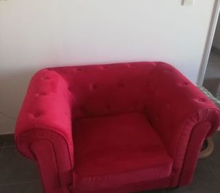 Fauteuil velours rouge cerise. Hauteur 70cm.largeur 108cm.très bon état.