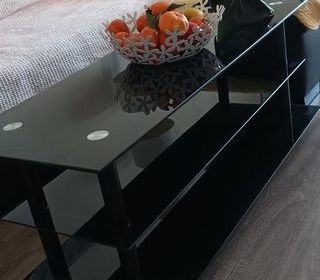 Belle table basse ou de Tv en verre trempé noire a 3 reng?s en tres bon état 115 cm x 40 cm Venir chercher sur place