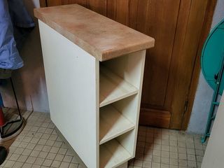 Desserte sur roulettes avec casiers à bouteilles ou autres. Dimensions hauteur 0,86 profondeur 0,65 largeur 0,25