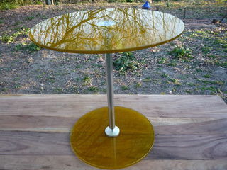 Table verre jaune design diamètre 45cm h 46cm à 78cm