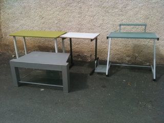 Table verte 120cm x 50cm h 73cm Table piètement fer noir 70cm x 50cm h 75cm Table ordi verre et métal 60cm x 85cm Table basse grise 102cm x 57cm h 48cm 25€ pièce