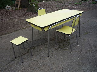 Table(retiré) 2 chaises ,25€ pièce un tabouret ,15€ pièce