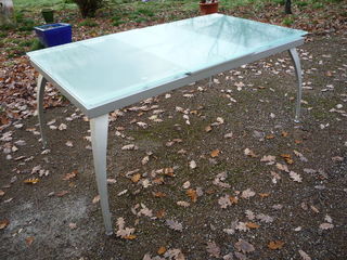 Table moderniste dessus verre 90cm x 215cm ouverte 90cm x 165cm fermé h 73,5cm