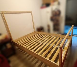Lit double en bois avec sommier à lattes. Structure stable en bois clair, sans matelas inclus. Parfait pour toute chambre ou chambre d'amis.