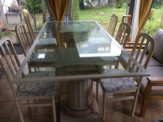 TABLE EN VERRE SECURITE SUR PIEDS EN PIERRE PRIX A DEBATTRE