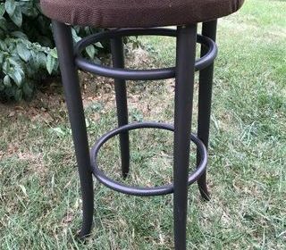 Tabouret haut de bar Assise refaite à neuf en tissu Hauteur 74 cm Diamètre assise 40 cm Très bon état
