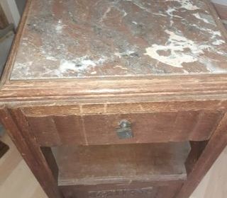 Ancien meuble "pot de chambre" avec 1 tiroir et 1 porte Dessus du meuble en marbre Vendu en l'état