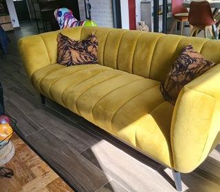 A vendre un ensemble de deux canapés velours ocre, un 3 places (200×85×70cm)et un 2 places(165×85×70cm) ... bon état général a part des griffures de chats surtout sur le canapé 2 p