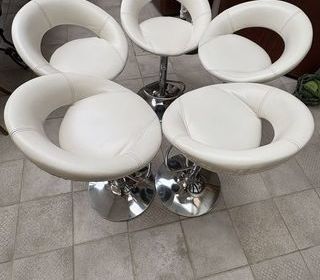 5 tabourets de cuisine pivotants, pieds inox et siège imitation cuir