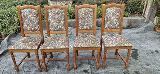 4 chaises en bois massif et tissus hauteur totale 100cm Très bon état Prix du lot: 40 euros