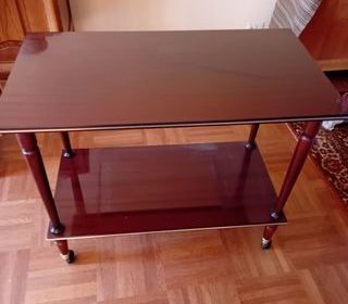 table couleur acajou vernis avec tablette hauteur : 70 longueur : 85 largeur : 46