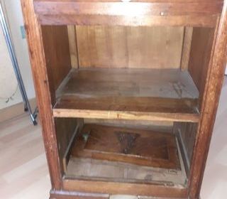 Meuble chevet en bois avec 1 porte en bas du meuble. Vendu en l'état
