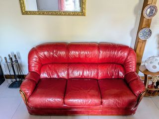 Cause changement vends canapé fixe 3 places et 2 fauteuils cuir buffle rouge.bon état. Pour tout renseignements me contacter.