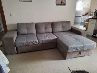 Je vends un canapé d'angle tissu gris avec un coffre sous la méridienne et un.pouf dans un des accoudoirs.il est en bon état sauf des griffures de chat.prix120 euros