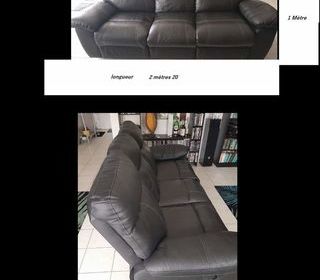 Vends canapé de couleur noir,3 places relax en cuir,état neuf. Acheté 800€ en 2019 facture à l'appui.