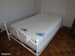 Lit 120 vintage blanc avec sommier à latte et matelas impeccable