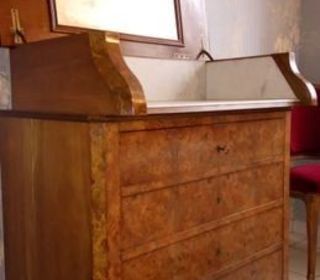 coiffeuse commode vintage acajou clef bronze miroir pouvant se refermer trés bel article a prendre a mon domicile