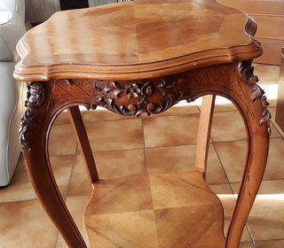 Vend guéridon console bois massif style LouisXV parfait état Dimensions Diamètre 50 cms Haut 73 cms Larg 44 cms. A retirer le cas échéant à la gare de Villiers sur marne (Rer E) P