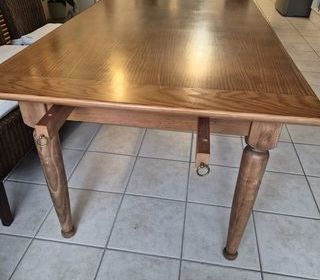 table de salle a manger lg 1,80 m plus deux rallonges de à,39 chacune 8 chaises en rotin voir photo jointe