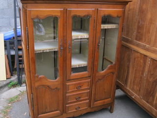 Confiturier en orme et noyer massif fait par artisan, pied coquilles fait manuellement. Hauteur 100cm largeur 65cm profondeur 53xcm
