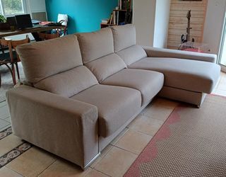 Vend cause déménagement un très beau canapé 3-4 places avec méridienne. Les assises se tirent vers l'avant pour plus de place et de confort en version allongé, et les dossiers et