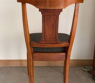 Lot de 8 chaises de salle à manger Roche -Bobois. Ossature en merisier, assise capitonnée tissus coloris anthracite.