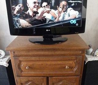 Meuble Tv en Chêne trois portes avec plateau dessus orientable , dimensions hauteur 85 X largeur 80 X profondeur 50