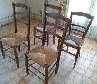Chaises paillées à haut dossier en bois marron, solides, en bon état, à peindre si l'on veut !... Peut-être aussi à déposer dans la chambre ou dans le couloir en déco !!! Je livre
