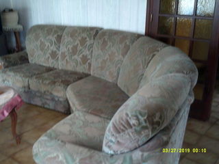 A vendre un canapé 6 places, velours bleuté/rosé, confortable et bon état