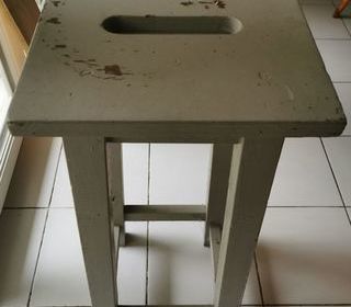 Un tabouret haut ou porte-plante ou sellette. Il est de bonne facture (bois massif) : lourd, solide et stable. Dimensions : H 77 cm ; Plateau 32 x 32 cm ; Base pieds 30,5 x 31 cm.