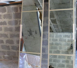 2 portes battantes avec miroirs pour dressing - Panneau de particule mélaminé imitation chêne naturel - Poignées en bois frêne teinté - Fixation par charnières non fournies (