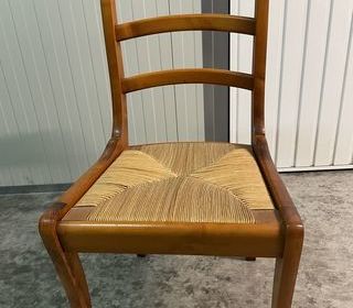 Chaise récente, ossature en bois, assise paillée. Dimensions: hauteur dossier: 88cm. Assise: profondeur: 42cm; largeur devant: 44cm; largeur à l'arrière: 39cm.