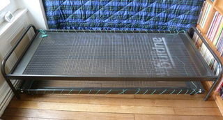 Ensemble 2 Lits gigognes métalliques AUPING L x l x h : 201 x 85 x 49,50 cm Sans les matelas Sommiers base plate métallique l'un des deux s'abaisse pour se glisser sous l'autre