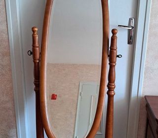 PSYCHE, Beau miroir et tiroir en chêne claire, très bon état. Hauteur 150cm, largeur 60cm profondeur 40cm