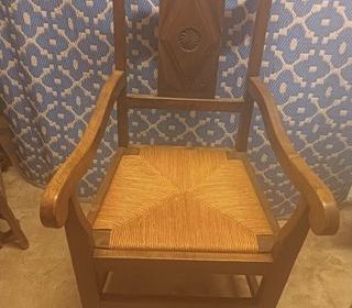 Fauteuil ancien rustique originaire de Bretagne. Médaillon sur le dossier.