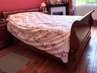 Je vends ce lit Louis Philippe en merisier massif pour un matelas de 140x190cm. - Type de produit : Lit - Matériau : Bois massif de merisier - Dimensions hors tout : 210 x 160